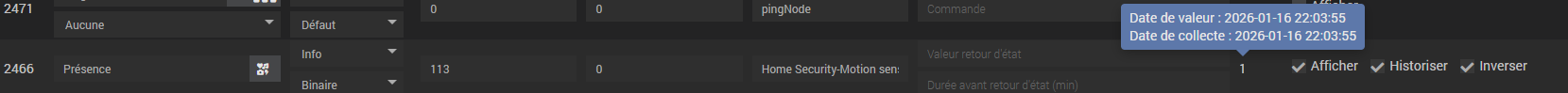 Par contre la valeur maintenant reste à 1 constamment depuis 22h03