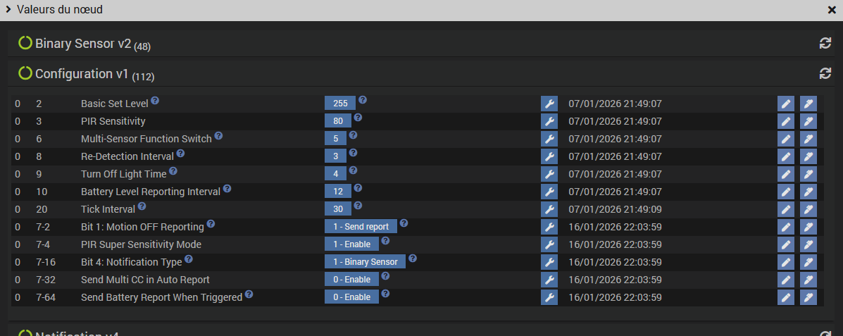 Apparemment tu n’es pas le seul à avoir eu le probleme : Configuration détecteur de mouvement Philio PSP05 - #20 par thazar