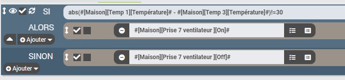Bonjour j’ai un problème avec mon scénario qui comporte deux sondes de températures et suivant la différence de température 5ºc enclenche un ventilateur. Le prog ce déclenche bien il ne s’arrête pas ?