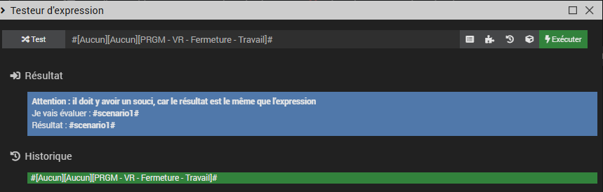 Bon y a plusieurs trucs qui me plaisent pas dans ce scénario mais pour commencer : qu’est ce qu’il se passe quand tu mets ton declencheur dans le testeur d’expression ?