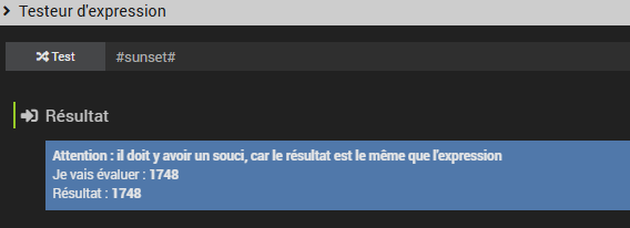 Tester #sunset# dans le testeur d’expression répond beaucoup mieux :