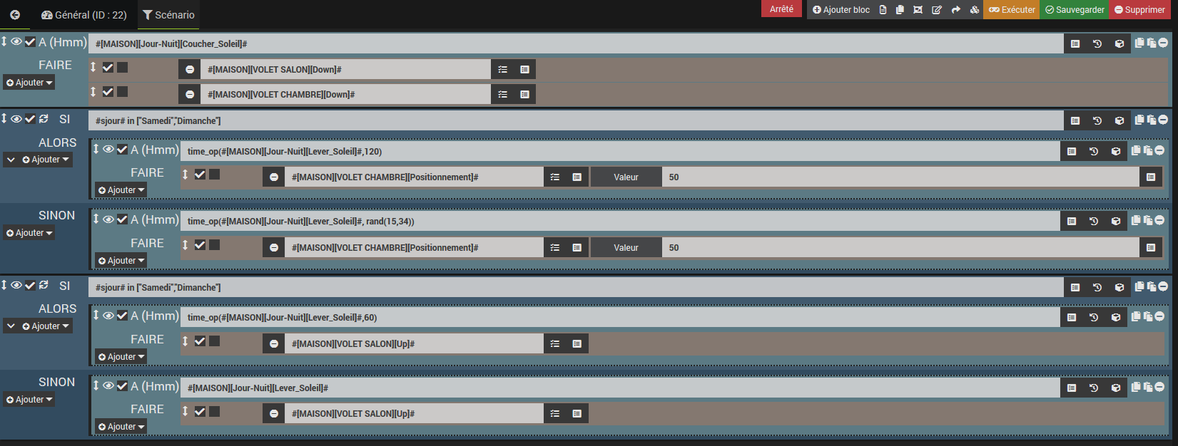 Je pense que c’était surtout lié à mes compétences sur jeedom, ça a évolué avec et le bloc code avec l’heure en variable c’est vraiment pratique !