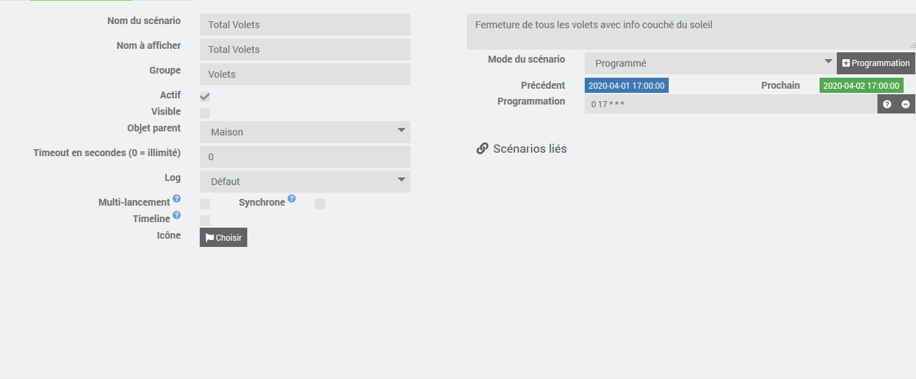 J’aimerais faire un scenario simple pour la fermeture de mes volets avec l’info coucher du soleil scenario. Faut il absolument utiliser un horaire ?