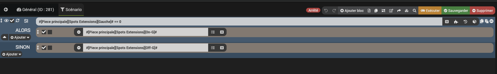 [2025-10-14 15:01:05][SCENARIO] - Exécution du sous-élément de type [condition] : if #[Piece principale][Spots Extensions][Gauche]# == 0