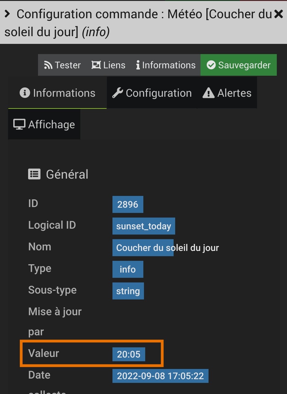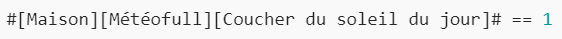 Ensuite, regardez avec time_between à la place de faire comme vous faites, exemple : time_between(#time#,#[Météo][Ville][Coucher du Soleil]#,#[Météo][Ville][Lever du Soleil]#)