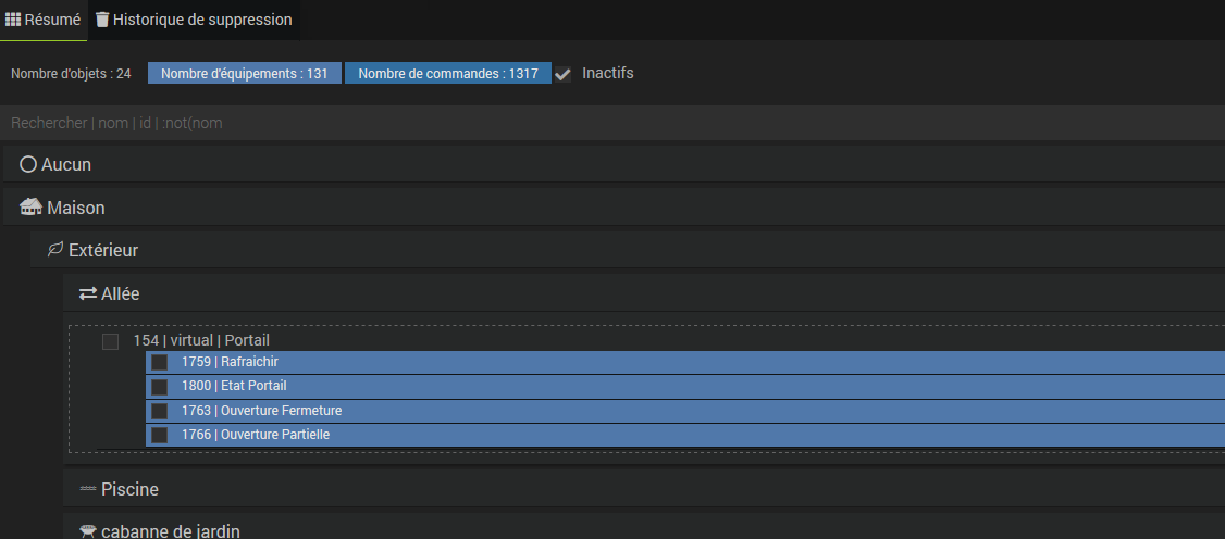 Je vois bien en mode texte des « id 147 » par exemple mais cela ne me dit pas où je peux trouver l’ide 147. D’ailleurs existe t il une manière de voir l’ID et son n° des différents équipements. Cela en dehors de l’indication qui figure à côté de « Général »