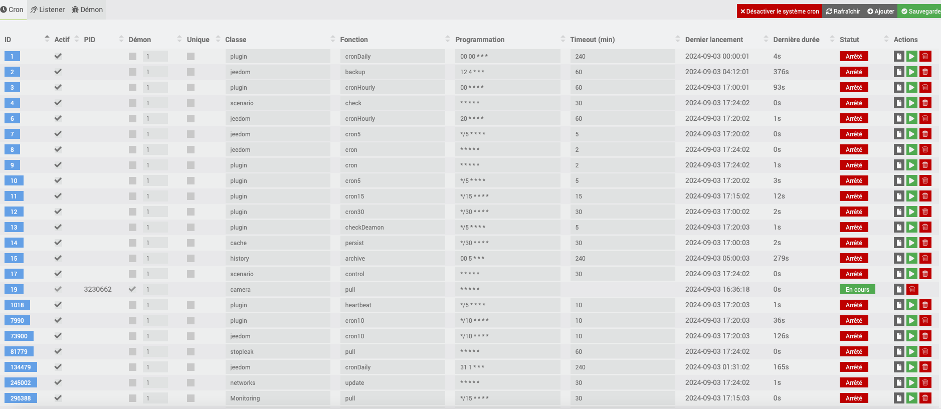 0031|[2024-09-03 03:38:09] ERROR : La dernière exécution du scénario ne s'est pas lancée. Vérifiez le log scenario_execution, ainsi que le log du scénario "Eteindre ventilation cave".