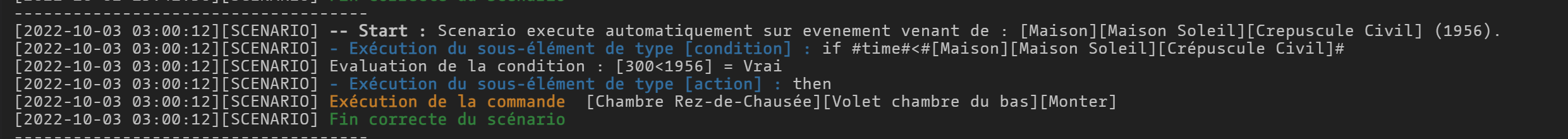 Ben plus concrètement je veux que ce scénario m’aide à ouvrir un volet quand je désactive mon alarme quand il fait toujours jour dehors. Et dans l’état ça fonctionne très bien c’est juste qu’elle ouvre aussi mon volet en pleine nuit .