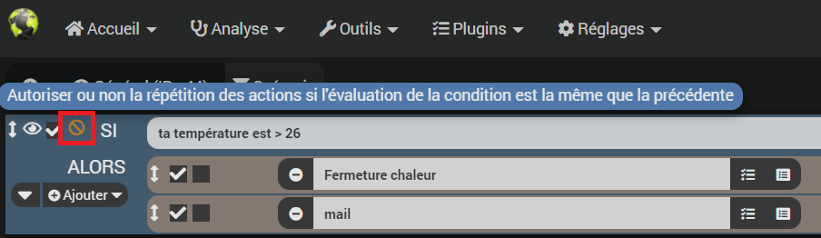 Mais si ça passe de 26.1 à 26.2 alors le scénario sera déclenché à nouveau mais la condition du SI étant la même que la dernière fois (supérieur à 26), l’action de fermeture des volets ne sera pas faite.