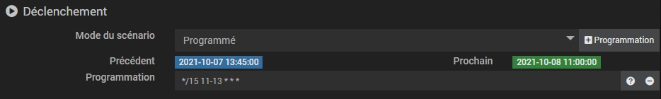 Déclencheur provoqué: Météo Actuellement - Couverture Nuageuse" Déclencheur planifié : 0 11 * * * Contenu :