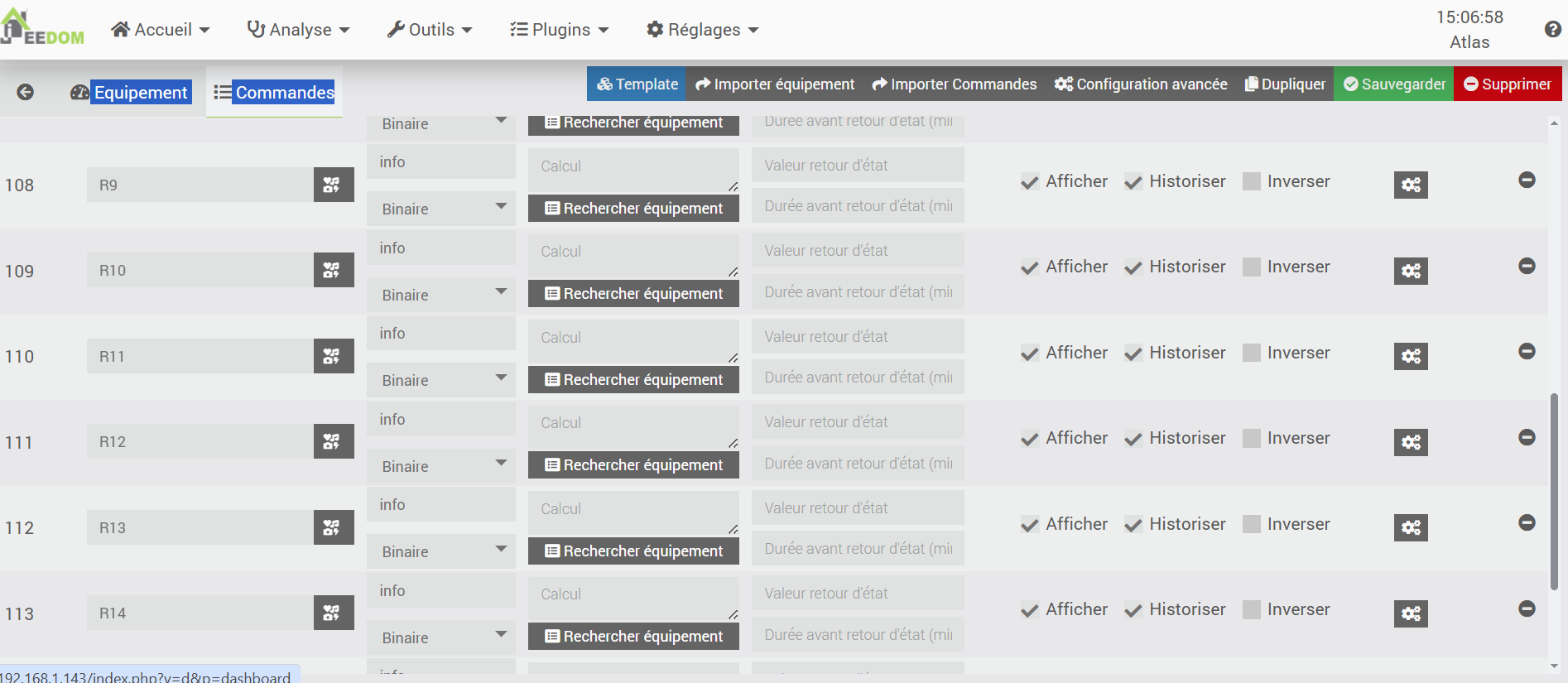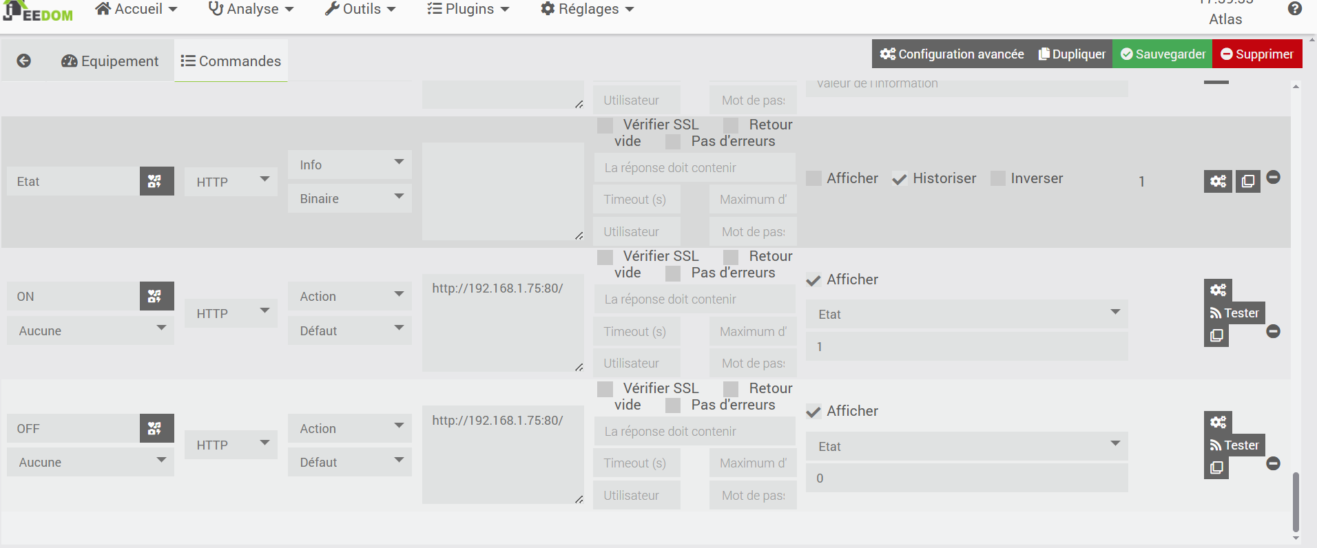 - Les 2 commandes action/défaut doivent être liées à une commande info/binaire qui se chargera de mémoriser l’état actuel de l’appareil.