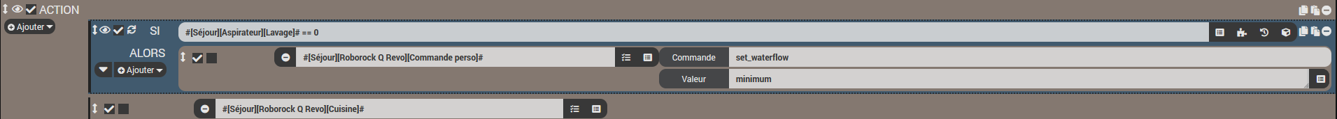 J’ai fait un scenario qui lance le nettoyage avec ou sans serpillère dans une pièce puis je le relance pour faire une autre pièce ainsi de suite