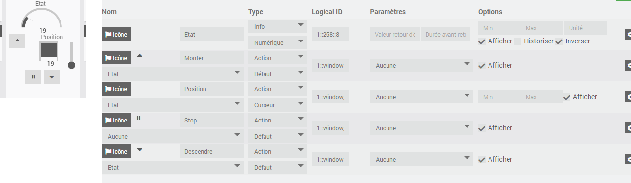 Vous savez cliquer sur TESTER sur la commande état lorsqu’il est fermé et faire pareil lorsqu’il est complètement ouvert pour voir les valeurs remontées?