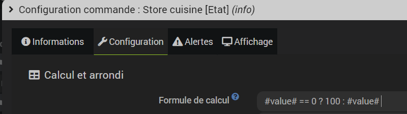 Pour qu’il m’affiche qu’il est fermé (100%) j’ai ceci qui fonctionne très bien.