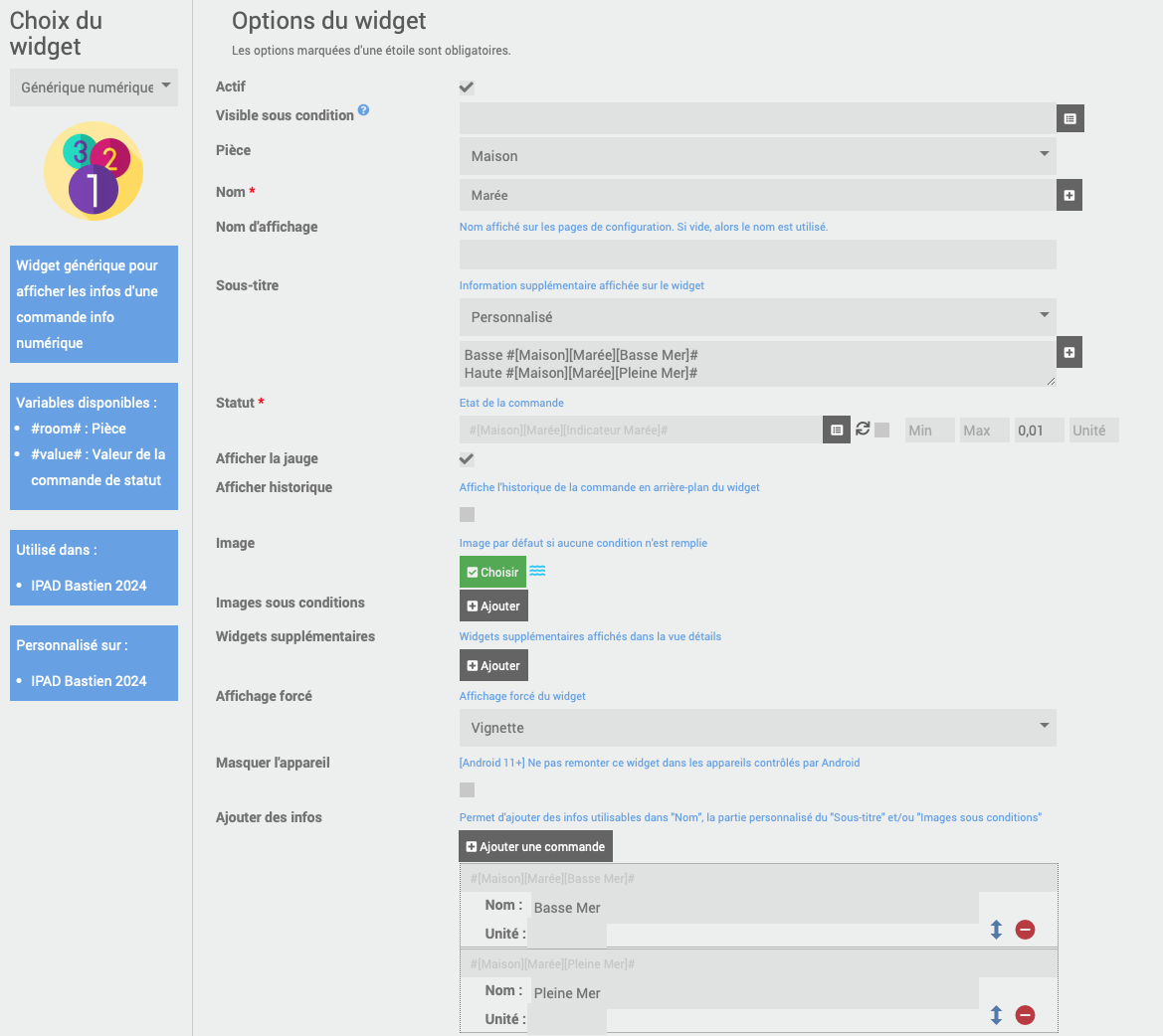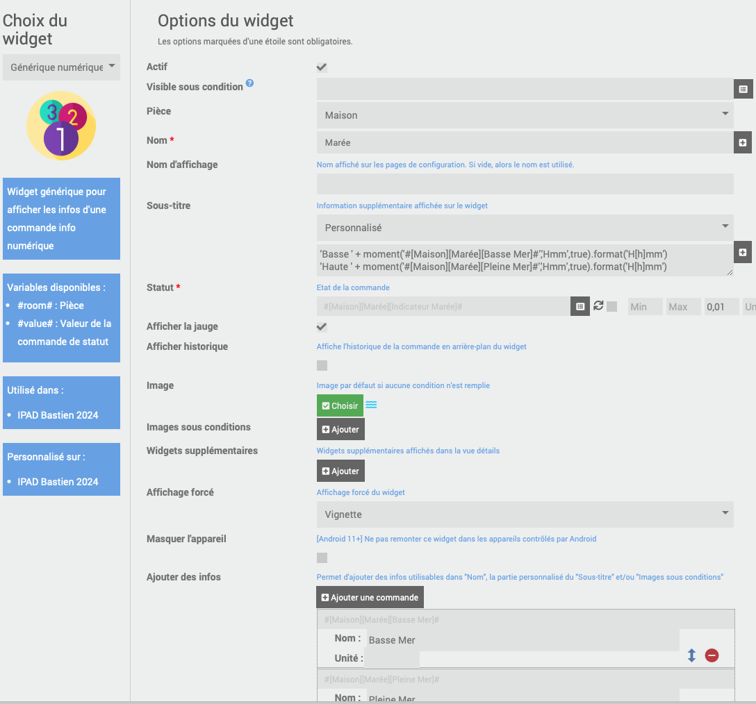 Sur Jeedom Connect j’ai crée un Widget, cependant les heures apparaissent sans séparation Marée Haute : 1728.