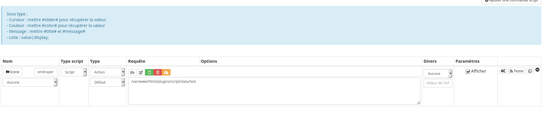 8/ Ajouter une commande script (en haut à droite)