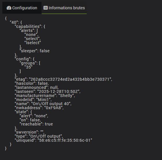 Je viens de recevoir des Shelly 1 gen 4 pour remplacer mes shelly 1. Voyant qu’ils sont zigbee et que d’après phoscon ils sont compatibles (DDF depuis la 2.30.2) , je les intègre mais aucunes commandes sous jeedom n’apparaissent et sous phoscon je peux les utiliser. Quelqu’un a t’il réussi a les utiliser ? Merci