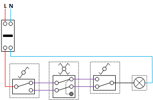 Ici j’ai fait avec un Aqara T1 car je ne trouvais pas si on était obliger d’utiliser la commande en circuit fermé avec Sx, si vous avez 3 ou plus d’interrupteur, sans changer le câblage et tirer un fil, il faut changer tout les interrupteur par des bouton poussoir, sinon si vous en avez 2 vous savez les garder en câblant comme ceci :