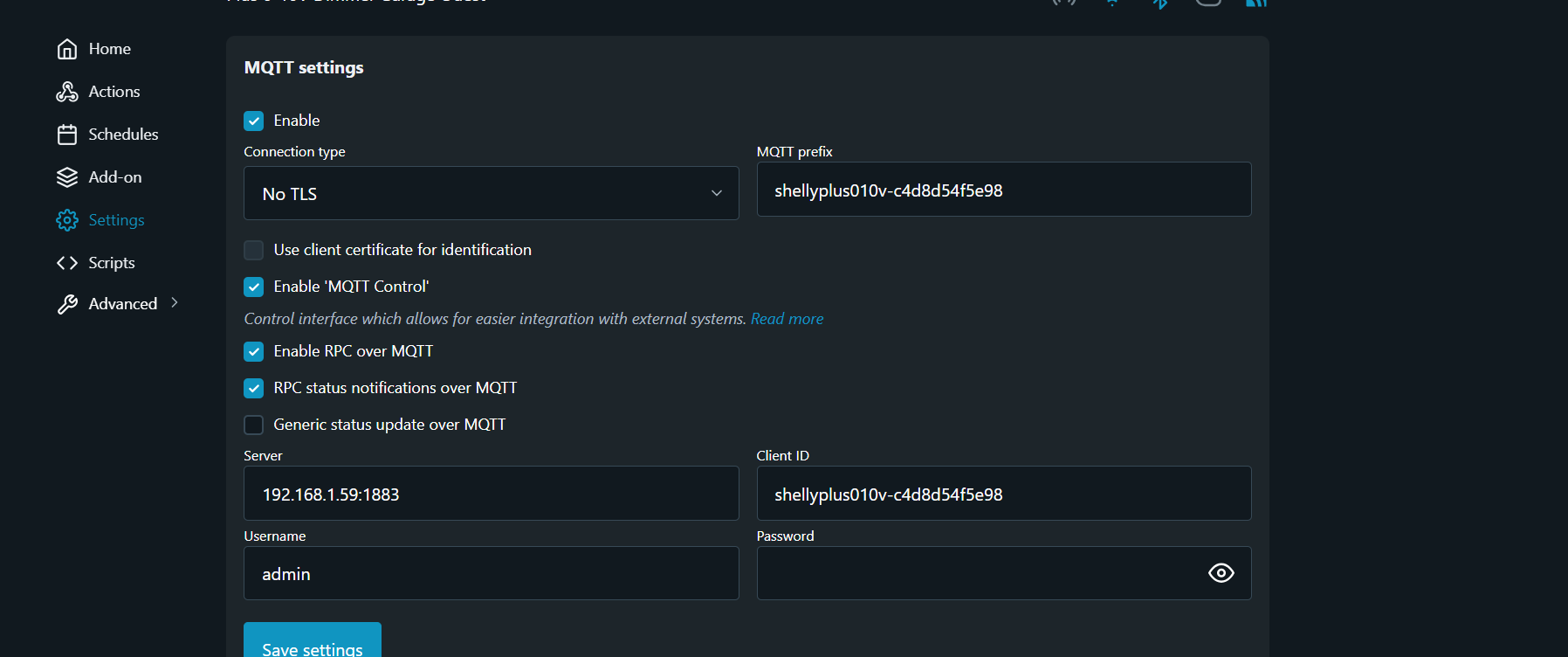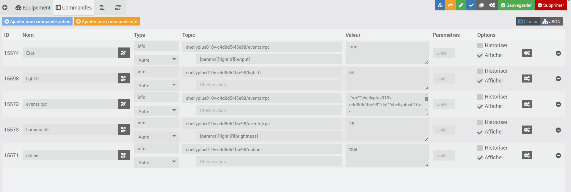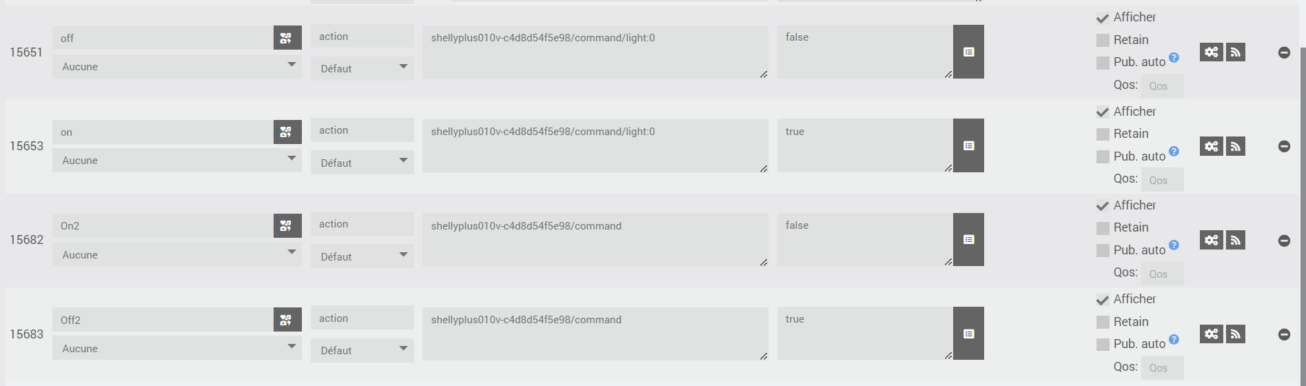 je suis entrain d’installer mon module shelly plus 0-10V. l’objectif est d’avoir les commandes actions et infos dans plugin-jmqtt