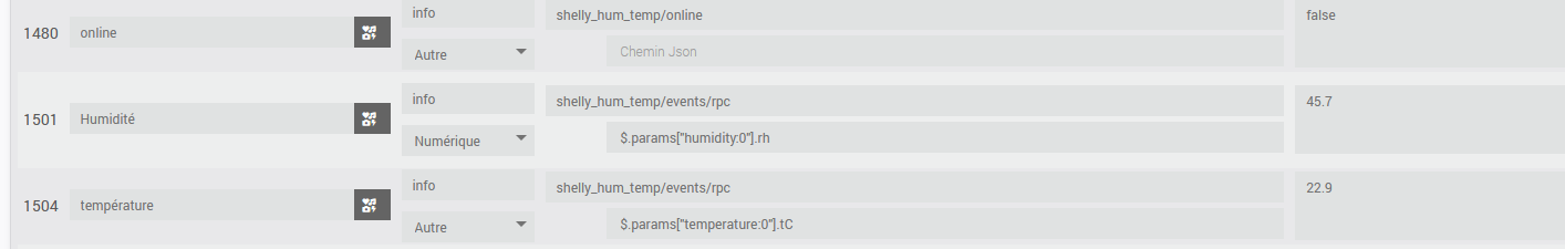 J’ai essayé avec le template Shelly plus HT mais je n’ai que cela qui remonte.(sans trace d’humidité ni de température).