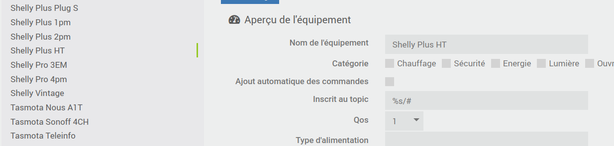 Je vient d’acheter un Shelly H&T Gen3 j’avait déjà la précédente version sans l’écran parfaitement intégré dans mon jeedom en MQTT mais la cette gen3 semble avoir changé niveau dialogue MQTT, quelqu’un a déjà réussie l’intégration dans Jeedom ? une petite aide serai la bienvenue