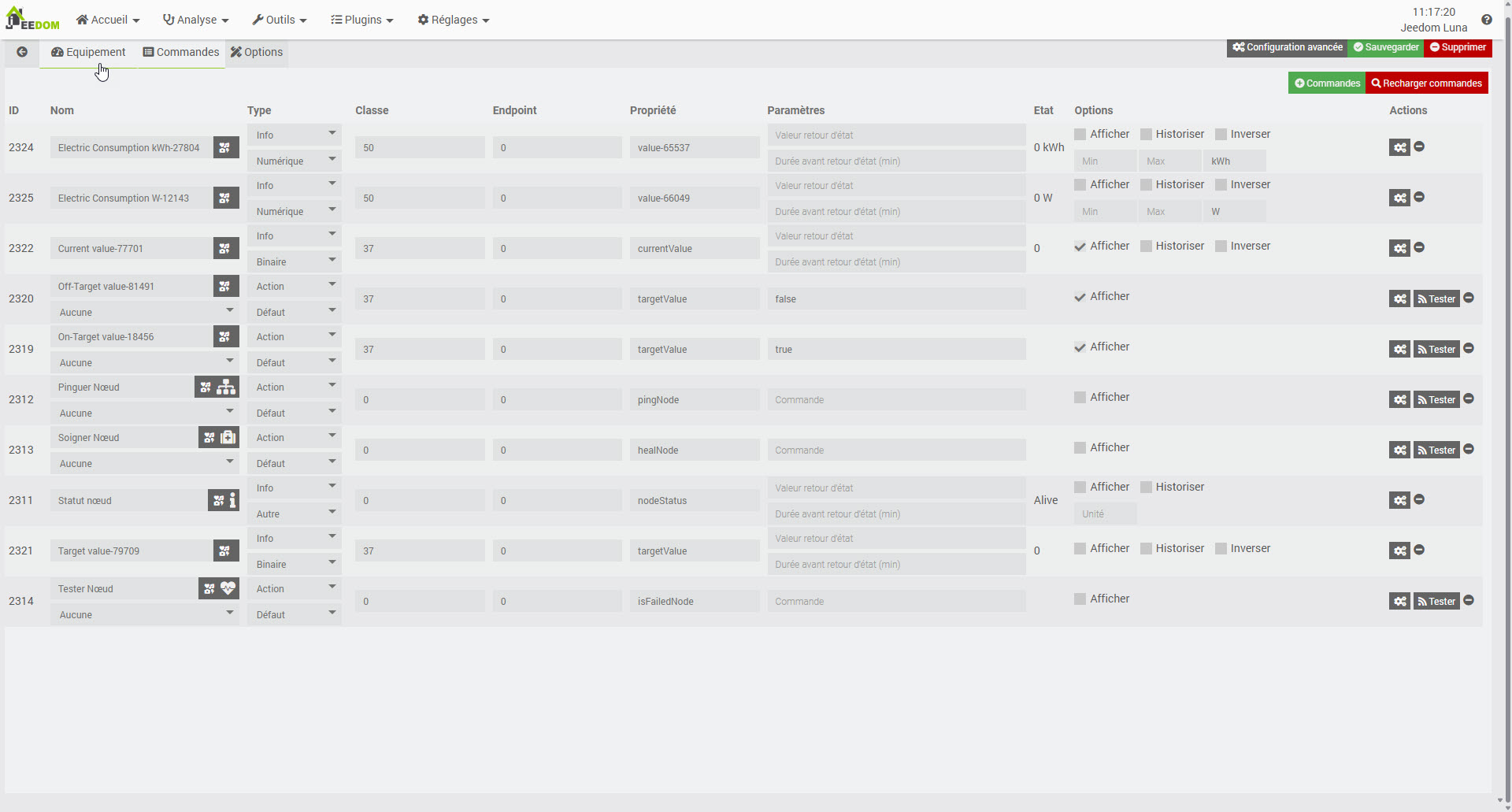 Il faut par contre créer manuellement toutes les commandes. Tu ne devrais avoir que on/off et mesures de consommation.