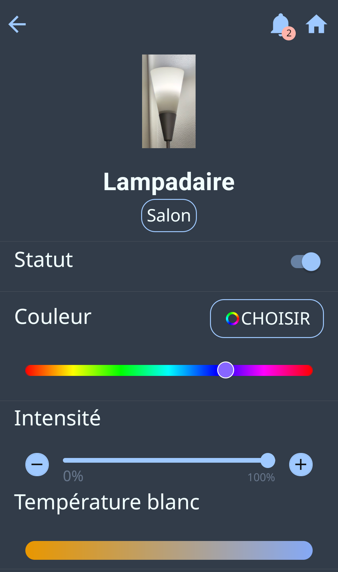j’ai un soucis avec mes deux lampes Yeelight, le slider qui contrôle la température de blanc ne fonctionne pas, le bouton dans le slider n’est même pas visible, avez vous une idée ?