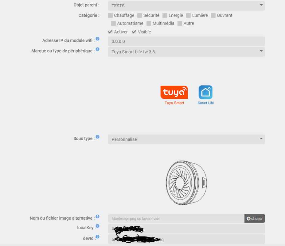 le plugin a reussi à inclure la siren. Mais quand je clique sur ON rien ne se passe car si je comprend bien il faut entrer l’adresse IP du module?