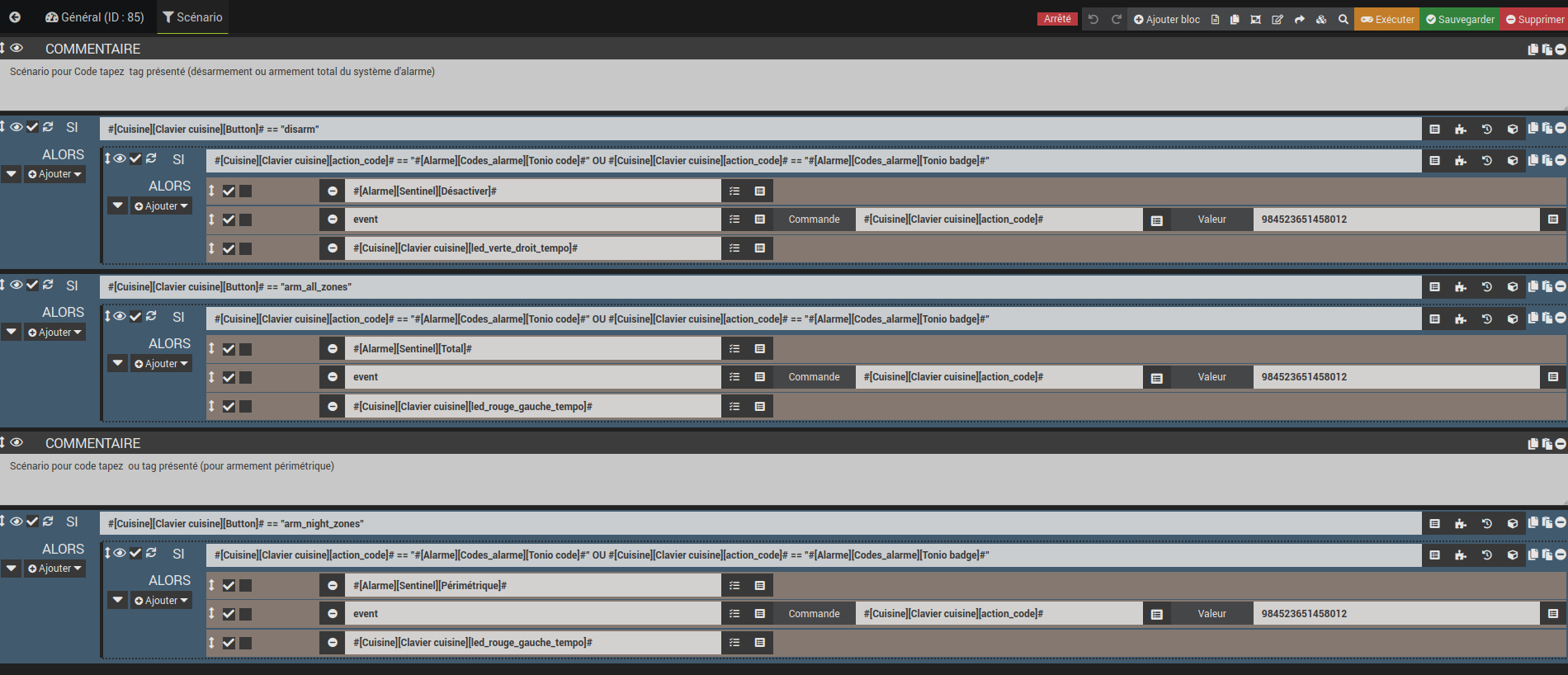 En fait jeedom garde en mémoire le code ou le tag