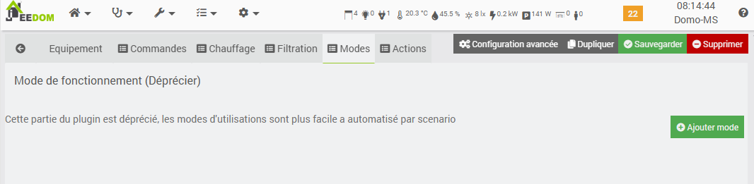 - Aussi par rapport à la dépreciation des modes, tu pourrais retirer la commande ‹ ‹ mode du spa › › qui se crée quand on ajoute un spa vu qu’elle ne sert plus à rien