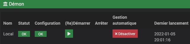-cliquer sur le bouton orange « Redémarrer le démon »