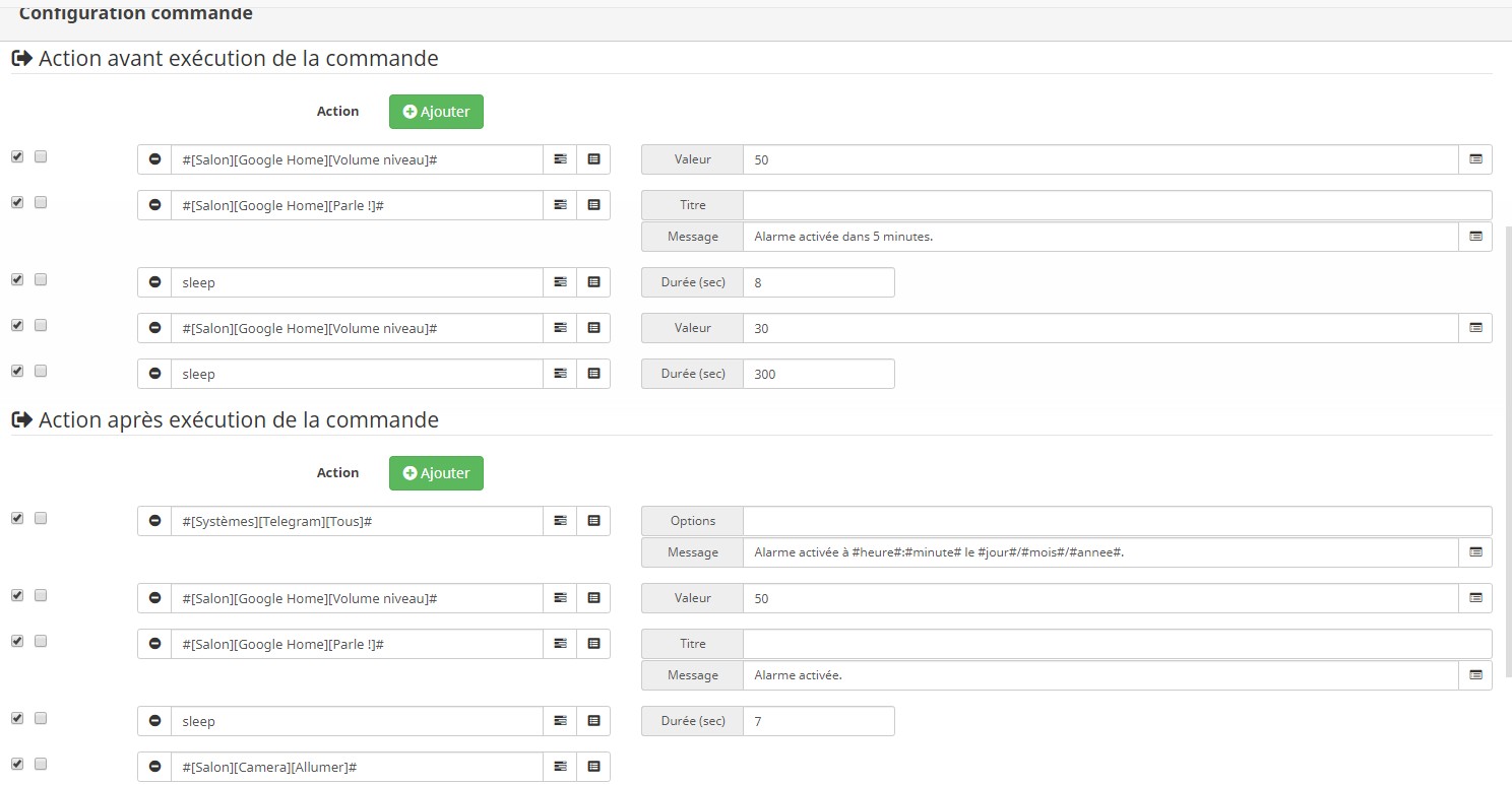 J’utilise des paramétrages sur un virtuel (Alarme) dans : « Action avant exécution de la commande ».
