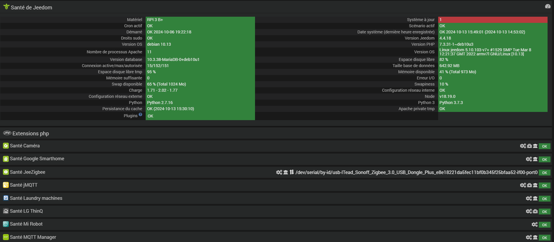 Par contre vous êtes en debian 10, il faut penser à passer au 11. Et votre charge est très élevé pour un pi3+.