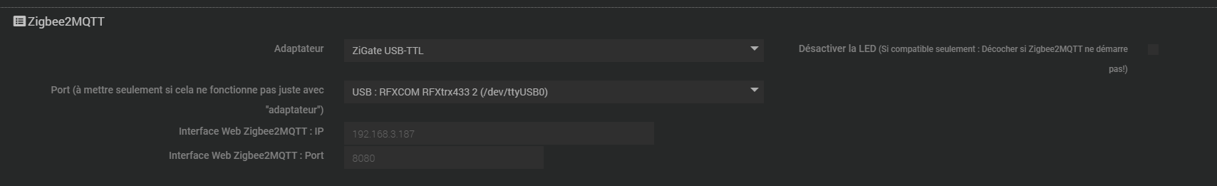 dans mon cas, tout zigbeelinker est installé sur la même VM et tout fonctionne bien sauf qu’en redémarrant, le plugin prend le mauvais adaptateur dans port et du coup, ben ca ne marche pas.