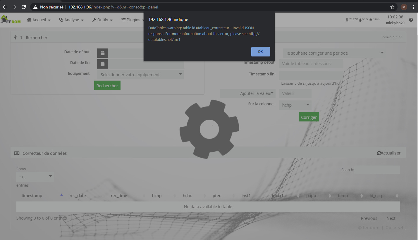 En revanche, j’ai un message d’erreur dans la partie « Correcteur de données »