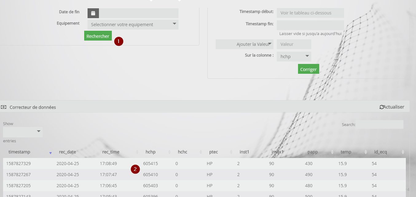 Pour ma seconde erreur, c’est tout bête. Visiblement il faut charger charger les données en cliquant sur « Rechercher » sur le point 1 de la même page.