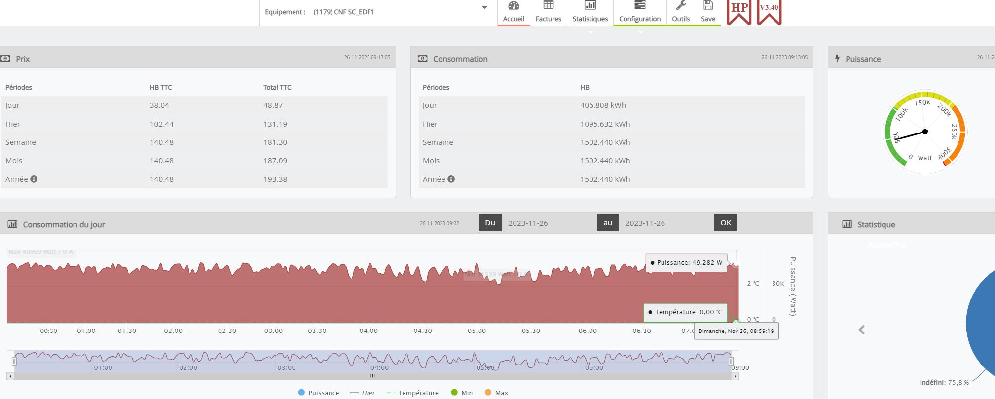 j’ai l’impression que l’interface bloque pour 50000W j’ai ma puissance quand je teste sur l’interface suivi conso équipement qui m’affiche des valeurs du genre 95 000… et quand je vais sur le panel suivi conso je reste en permanence à une valeur autour de 49000 je comprend pas pourquoi.