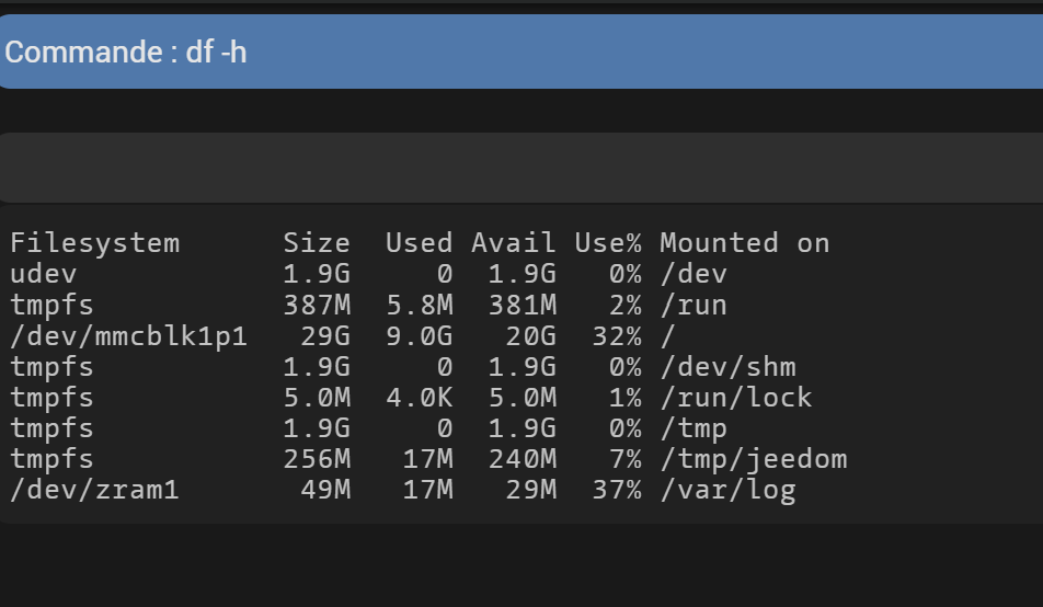 9Go utilisé pour /dev/mmcblk1p1 mais je ne sais pas si c’est normal ?