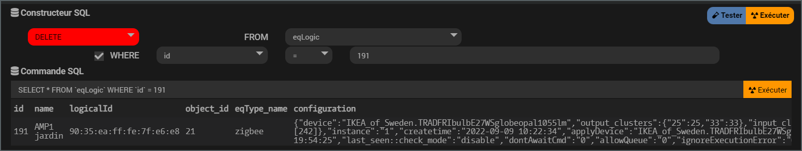 Vérifier que ce soit le module récalcitrant et si c’est le cas, sélectionner DELETE et exécuter