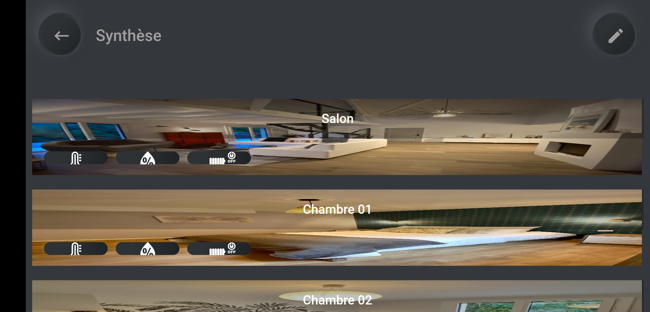 Sur Jeedom, de mon point de vue une des parties les plus pratique pour accéder aux équipements c’est la synthèse, une fois les objets correctement configuré le résultat est très sympathique même en navigation mobile.
