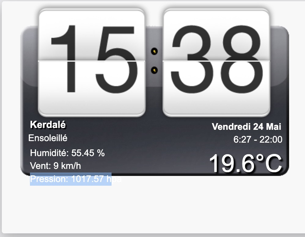 bon je laisse tomber, on ne va pas passer du temps sur ce point de détail, je vais afficher la pression sur un widget baromètre à côté, ça fera l’affaire.