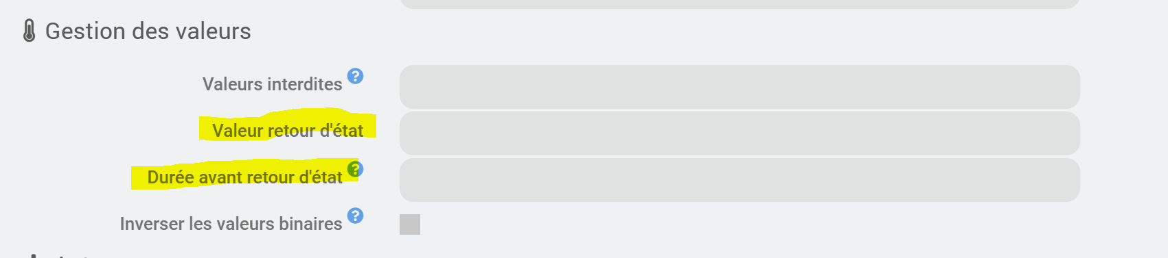 Si vous voulez que la commande revienne à une valeur au bout d’un certain temps après appui sur la télécommande, vous pouvez paramétrer le retour d’état dans la configuration de la commande :