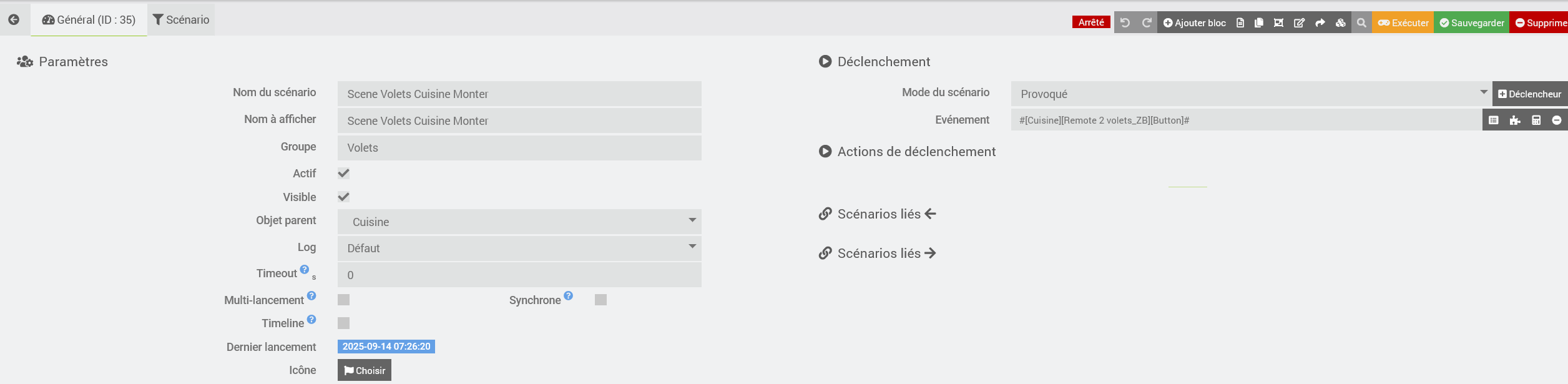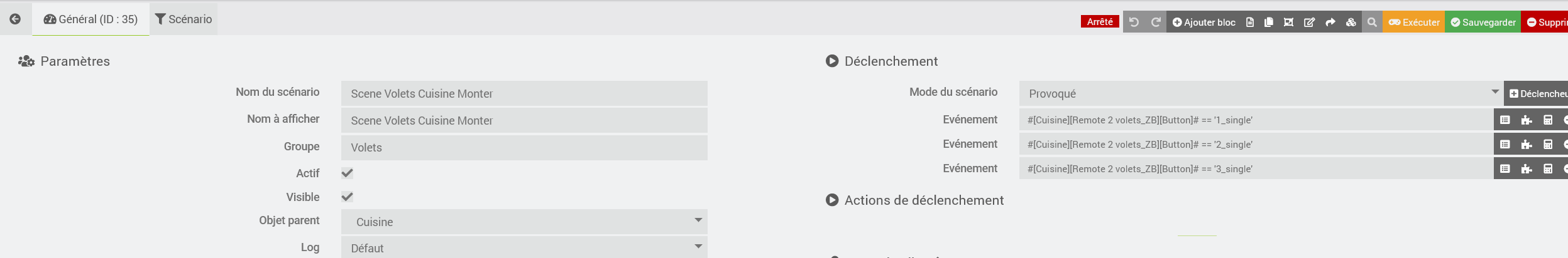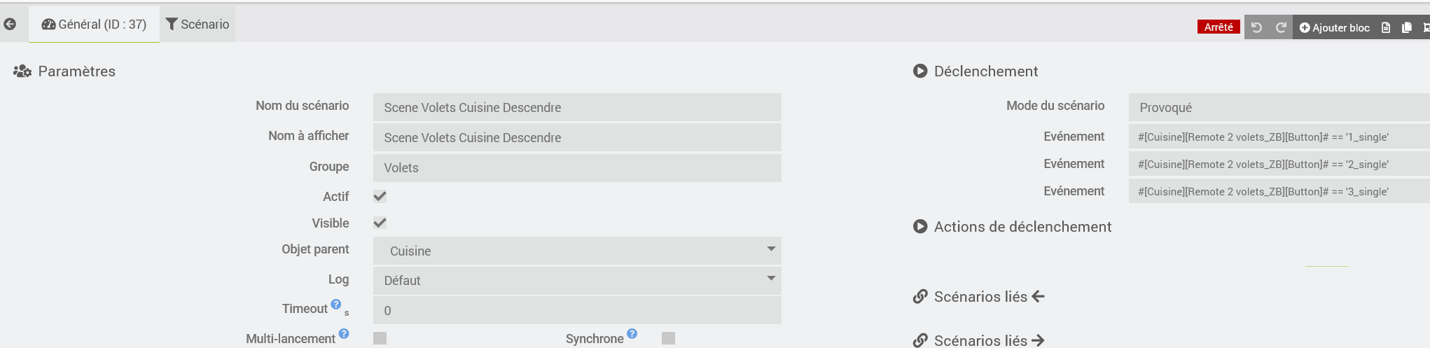 ce genre de scénario permet de piloter en local et à distance jusqu a 2 ou 4 volets pour un autre.
