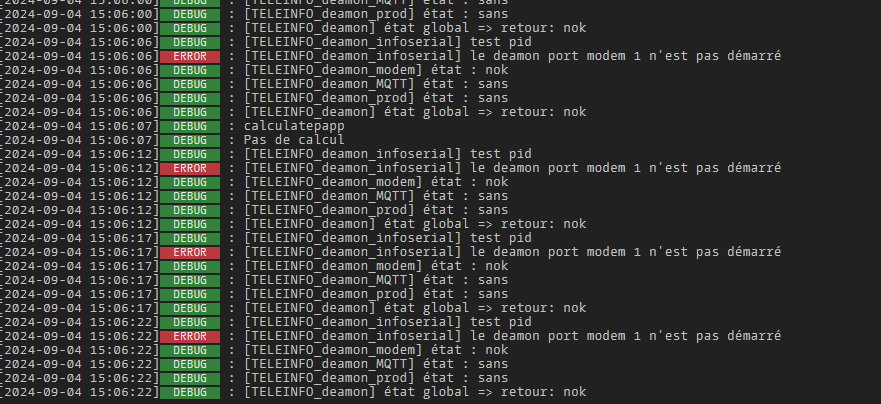 [2024-09-04 07:24:44] DEBUG : Writing PID 17396 to /tmp/jeedom/teleinfo/teleinfo_conso.pid
