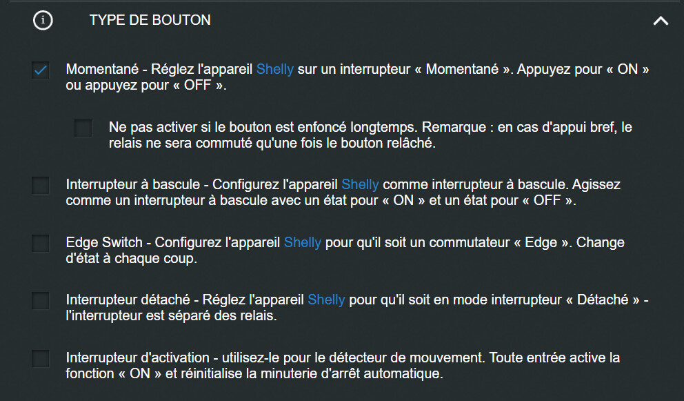 Si j’allume avec le shelly je peux pas éteindre avec les. Boutons et vice versa.