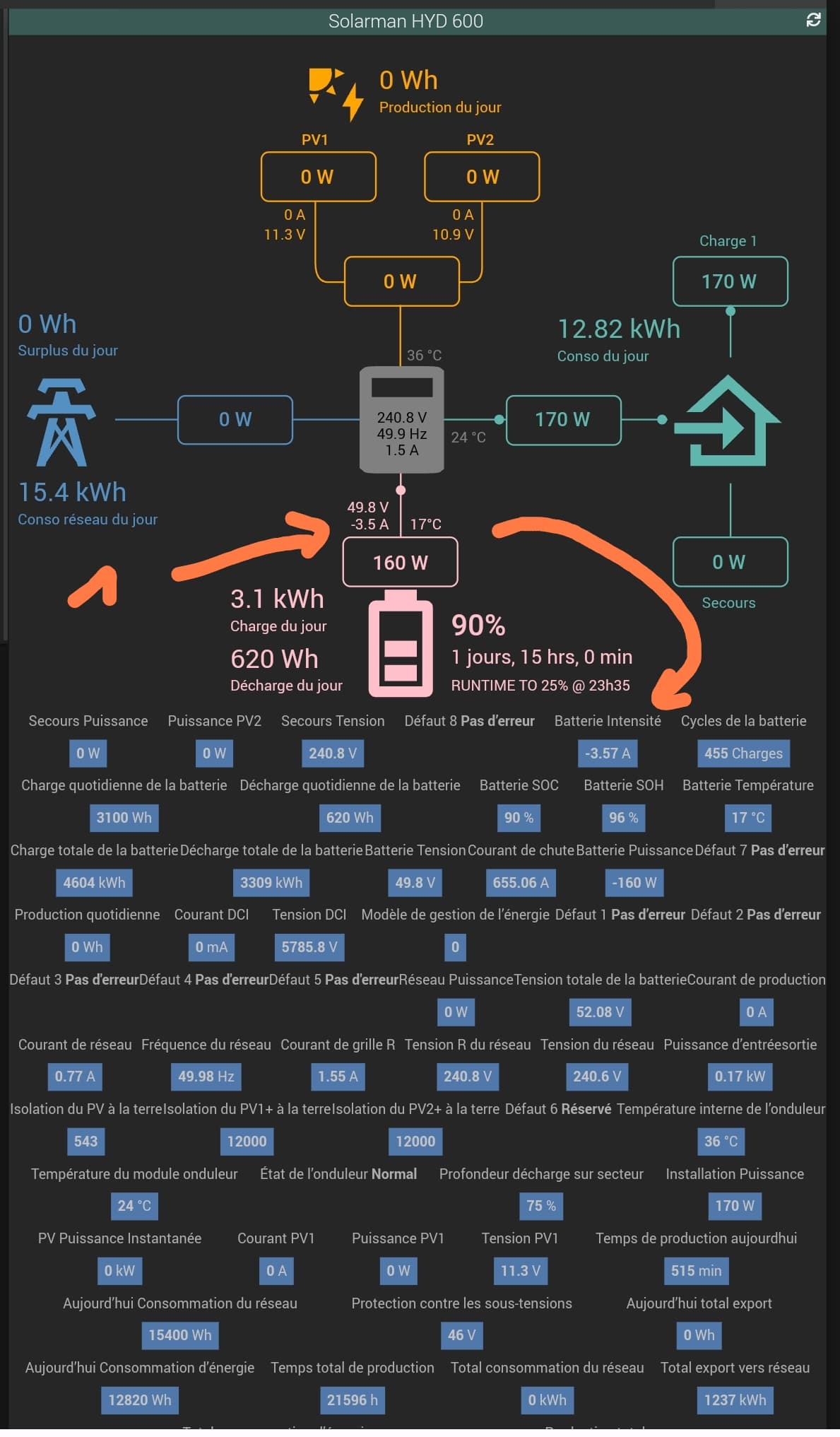 En regardant le code et la fonction jeedomupdate, puisque le sens devient incohérent que lorsque il y as refesh des valeurs, j’ai inverser charge et decharge, betement, car je ne vois pas le bug dans le code et ça fonctionne :