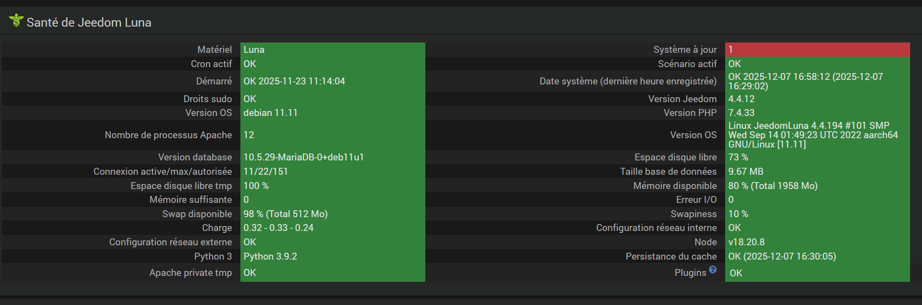 Pouvez-vous montrer la page de configuration du plugin Jeezigbee et la page santé de votre jeedom ?