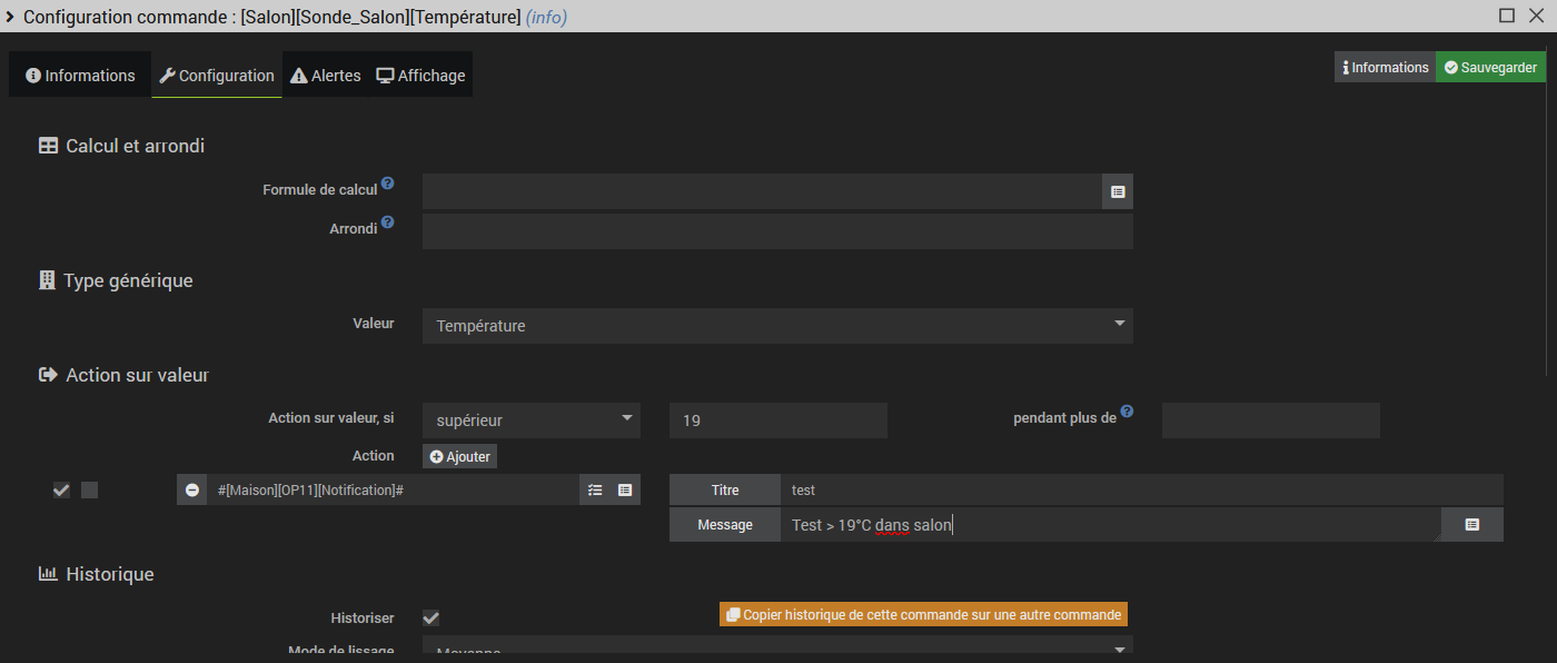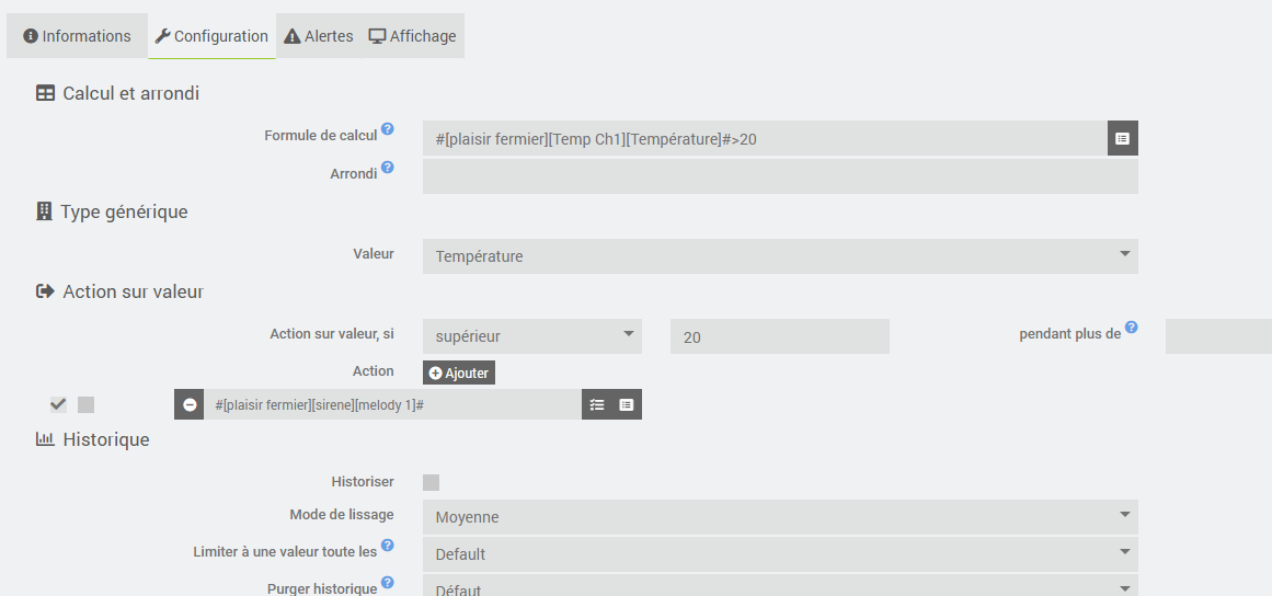 j’aimerai declancher la sirene si temperature trop haute