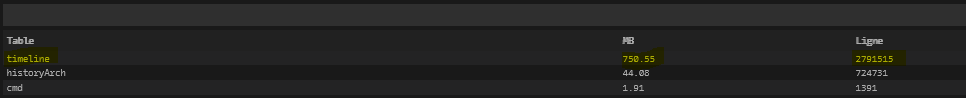 j’ai essayé de vider la table timeline via la commande TRUNCATE Table Timeline.