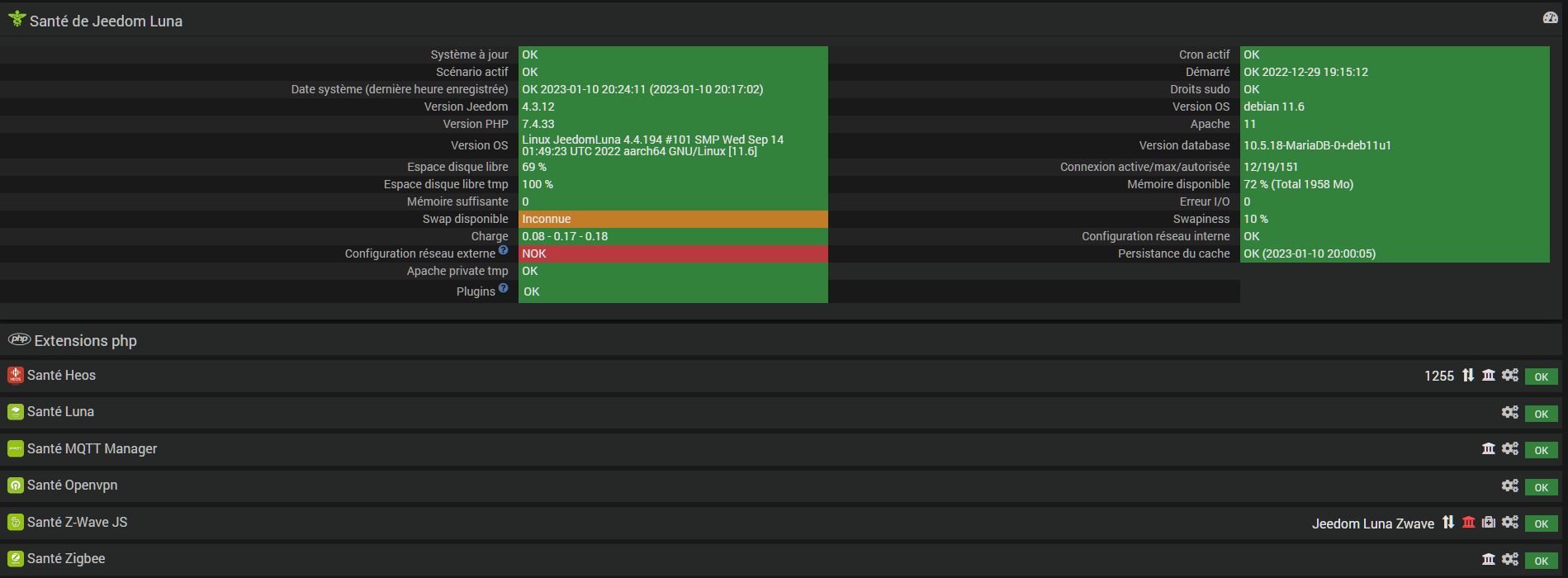La version de l’os de la luna est linux 11 bullseye et open zwave n’est pas compatibles en revanche zwave js oui.